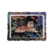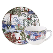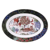 Дворцовый сад на фаянсе — как ожившая восточная сказка. Благородные тигры, экзотические птицы, цветы необычайной красоты и изящные ветви переплетаются в тонком танце.