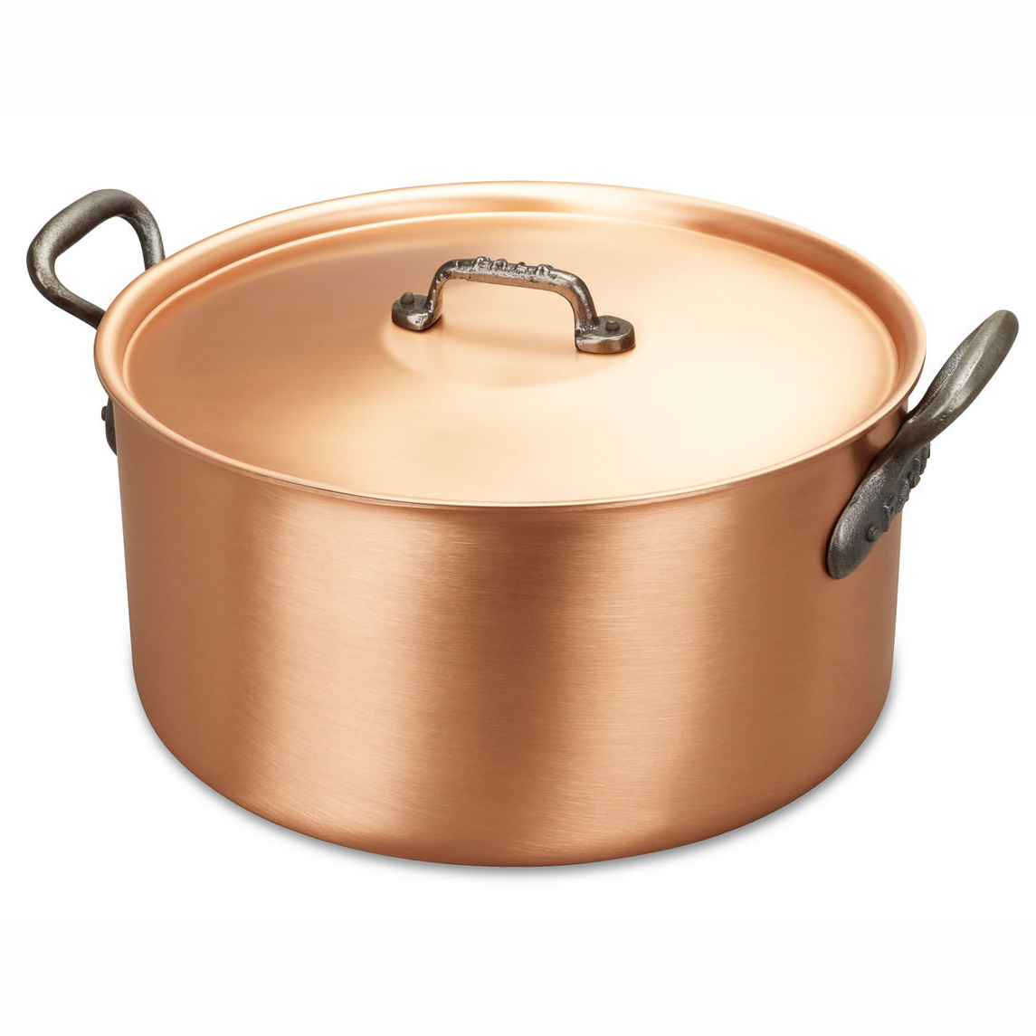 Высокая медная кастрюля от компании Falk Culinair идеально подходит для приготовления блюд на медленном огне. Слой из нержавеющей стали, которым покрыта посуда изнутри никогда не вступает во взаимодействие с продуктами, что гарантирует их качество, вкус и безопасность. Эти довольно большие кастрюли хорошо подходят для приготовления различных супов, соусов, жаркого, щей и борщей. Высокие стенки отлично удерживают влагу. А благодаря хорошей теплопроводности и теплоемкости меди кастрюли из нее становятся идеальной посудой для приготовления любых продуктов. Тепло распределяется равномерно по всей поверхности посуды, и контроль температуры становится достаточно несложным делом.