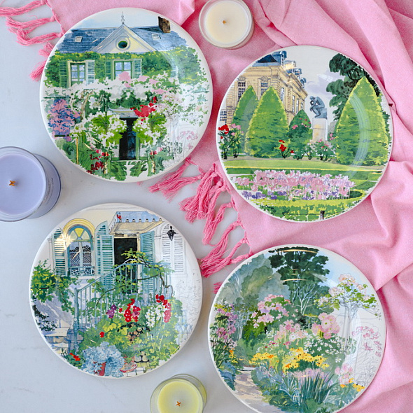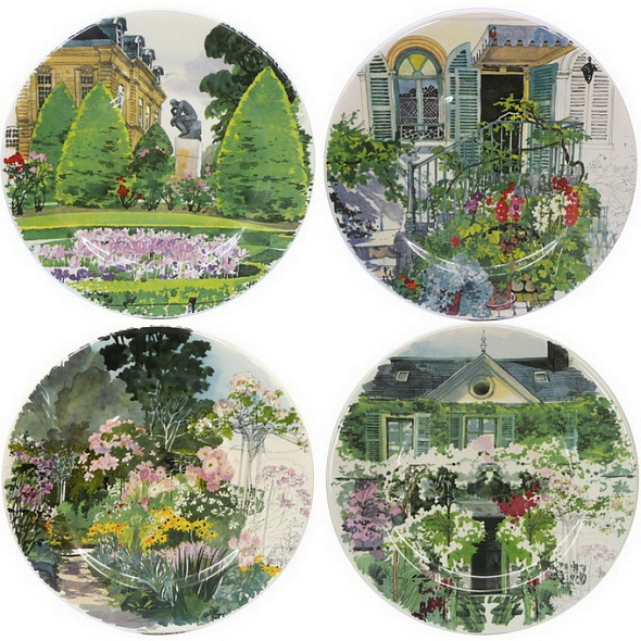 Этот набор из четырех тарелок от Gien станет изюминкой любой сервироки! Отличительной особенностью комплекта является то, что каждая тарелка украшена разными рисунками. Коллекция Paris Giverny - это прогулка садом в акварельной атмосфере! Благодаря насыщенным краскам Вы можете познакомиться с садом Клода Моне не выходя из дома. Каждая деталь декора окунает в сад вне времени, одного из мастеров импрессионизма. Можно мыть в посудомоечной машине и использовать в микроволновой печи. Сочетайте этот набор с другими предметами из коллекции Paris Giverny, чтобы создать восхитительную сервировку стола! Продукция компании Gien представлена компанией Kitchen House на территории Украины. Купить Gien в Киеве. Купить посуду Киев Бульвар Леси Украинки, 30 Тел:38 (068) 650 22 33