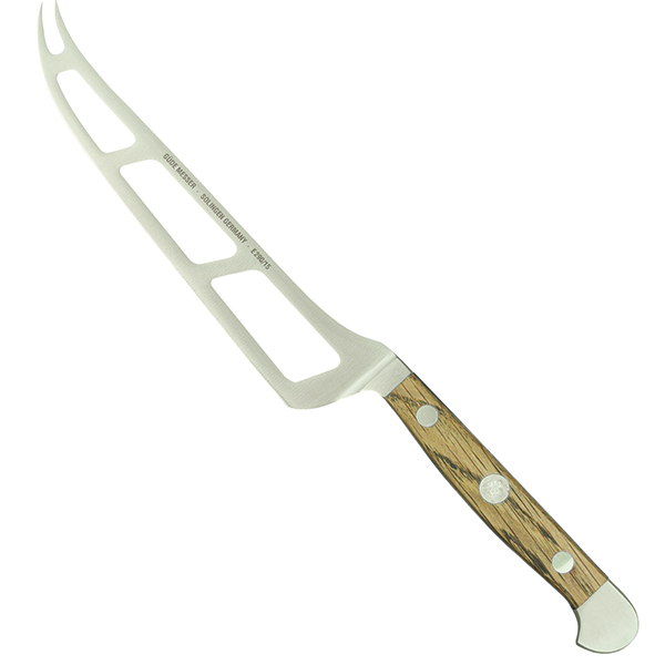 Легкий нож с плавной зубчатой режущей кромкой. Острие раздвоено (вилкой), что делает удобной сервировку блюд с помощью ножа. Кроме того, в лезвии ножа для сыра сделаны большие отверстия для уменьшения прилипания сыра к лезвию.Купить Güde в Киеве. Купить ножи со скидкой в Киеве. Ножи по хорошей цене в Киеве. Купить немецкие ножи в Киеве. Купить нож для сыра в Киеве. VENDOME Киев. Студия сервировки стола VENDOME Киев. +38(068) 650 22 33