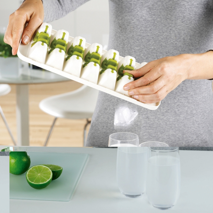 Внешне, казалось бы, обычный лоток для льда, на самом деле представляет собой инновационную конструкцию, которая имеет уникальный механизм переключения. Что позволяет содержать кубики льда в безопасном месте, пока они не нужны. Эта новая обновленная версия включает в себя гибкую крышку, что позволяет ставить лотки один на другой в морозильной камере, благодаря чему вы можете быть уверенными в том, что вода не прольется, а сами кубики льда не будут соприкасаться с другими продуктами. Наполните QuickSnap ™ Plus водой так же, как обычный лоток льда. Когда вам потребуется лед, следует просто немного скрутить лоток, чтобы кубики «отклеились» от стенок ниш, а затем нужно нажать переключатель на обратной стороне формы в направлении, указанном стрелкой. Таким образом вы освободите один кубик льда в то время, как остальные останутся в лотке. С QuickSnap ™ Plus вы сможете использовать то количество кубиков льда которое вам действительно нужно, пока остальные остаются надежно зафисированными в своих отсеках. И лоток и можно спокойно убирать обратно в морозильную камеру. Эта форма для льда идеально подходит для того, чтобы бросать лед прямо в напитки, не касаясь кубиков руками. Купить форму для льда QuickSnap™ Plus от компании Joseph Joseph вы можете на сайте компании Kitchen House. Купить Joseph Joseph. Купить джозеф. Студия сервировки стола VENDOME Киев, бульвар Леси Украинки, 30. Телефон: +38(068)650-22-33
