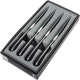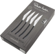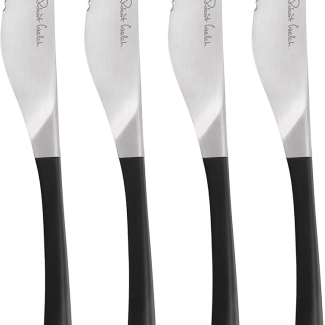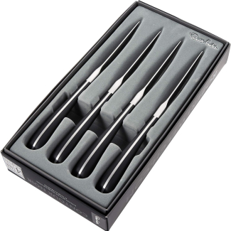 Этот набор для стейка на 4 персоны состоит из четырех ножей изготовленных из сатинированной высококачественной нержавеющей стали, ручки изготовлены из современного материала термопласта. Современная изогнутая форма удобно ложиться в руку, а лезвия ножей сконструированны таким образом, что вы можете их ставить на стол как традиционно, так и вертикально, в обоих случаях режущая кромка ножа будет приподнята над повехностью стола. Благодаря идеальной балансировке и весу приборы невероятно удобны и делают прием пищи удивительно приятным процессом. Держать в руках такой столовый прибор – настоящее удовольствие. Столовые приборы Robert Welch никогда вас не подведут, потому что для их изготовления используется специально разработанная, высококачественная нержавеющая сталь. Не рекомендуется мыть в посудомоечной машине! Купить столовые приборы Robert Welch Киев. Купить Роберт Велш в Киеве. Студия сервировки стола VENDOME Киев, бульвар Леси Украинки, 30. Телефон: +38(068)650-22-33