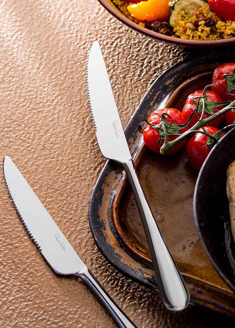 В этот набор на четырех персон входит четыре ножа для мяса. Благодаря идеальной балансировке и весу, приборы Robert Welch невероятно удобны и делают прием пищи удивительно приятным процессом. Ножи необычайно элегантны. Они непременно станут украшением любой сервировки. Зеркальная полировка стали придает изделиям особенный шарм, благодаря ей приборы становятся идеально гладкими, блестящими и сияющими. Держать в руках такой столовый прибор – настоящее удовольствие. Еще одно из достоинств этих столовых приборов – их можно без опаски мыть в посудомоечной машине. Столовые приборы Robert Welch никогда вас не подведут, потому что для их изготовления используется специально разработанная, высококачественная нержавеющая сталь. При этом конкретный тип сплава зависит от сферы его использования. Например, для изготовления лезвий ножей применяется специально закаленная нержавеющая сталь, а для изготовления ложек - так называемая медицинская сталь 18/10. К каждому из изделий мастера команды Robert Welch подходят с особой ответственностью.Купить набор ножей для мяса Robert Welch Киев. Купить Роберт Велш в Киеве.Купить ножи для стейка в Киеве. Студия сервировки стола VENDOME Киев, бульвар Леси Украинки, 30. Телефон: +38(068)650-22-33