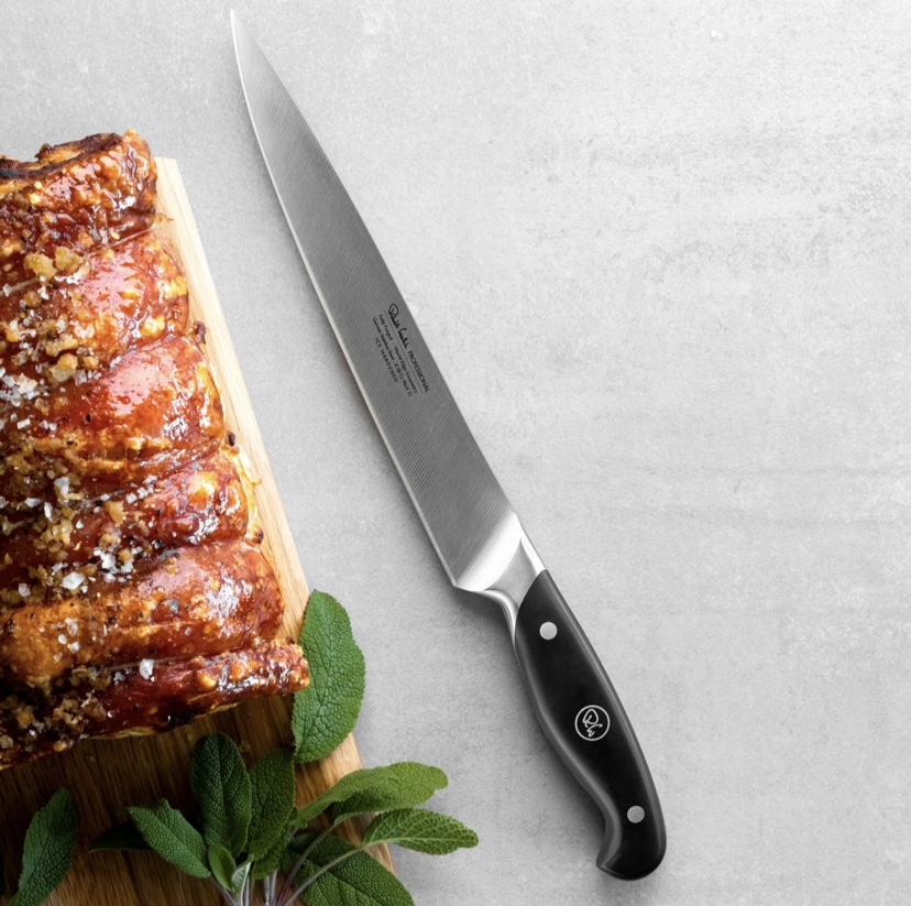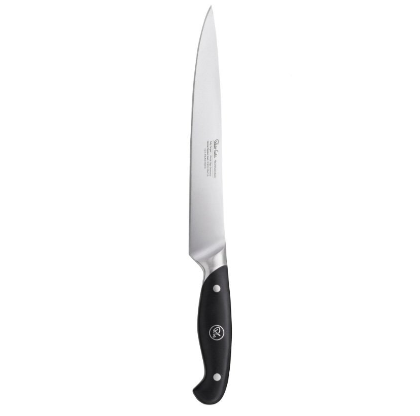 Разделочный нож от Robert Welch подойдет как для использования в гастрономии, так и на профессиональной кухне. Нарезка различных продуктов на тончайшие ломтики благодаря такому ножу превратится в настоящее удовольствие! Профессиональные ножи из этой серии имеют комфортную, классическую форму рукояти, а также они имеют идеальную балансировку! Немецкая нержавеющая сталь закаленная до 57 по Rockwell обеспечивает более жесткое и устойчивое лезвие, которое долгое время сохраняет остроту режущей кромки с углом заточки японских ножей 15 градусов! Не рекомендуется мыть в посудомоечной машине! Купить ножи Robert Welch в Киеве. Купить ножи Роберт Велш в Киеве. Купить нож в Киеве. Студия сервировки стола VENDOME Киев, бульвар Леси Украинки, 30. Телефон: +38(068)650-22-33