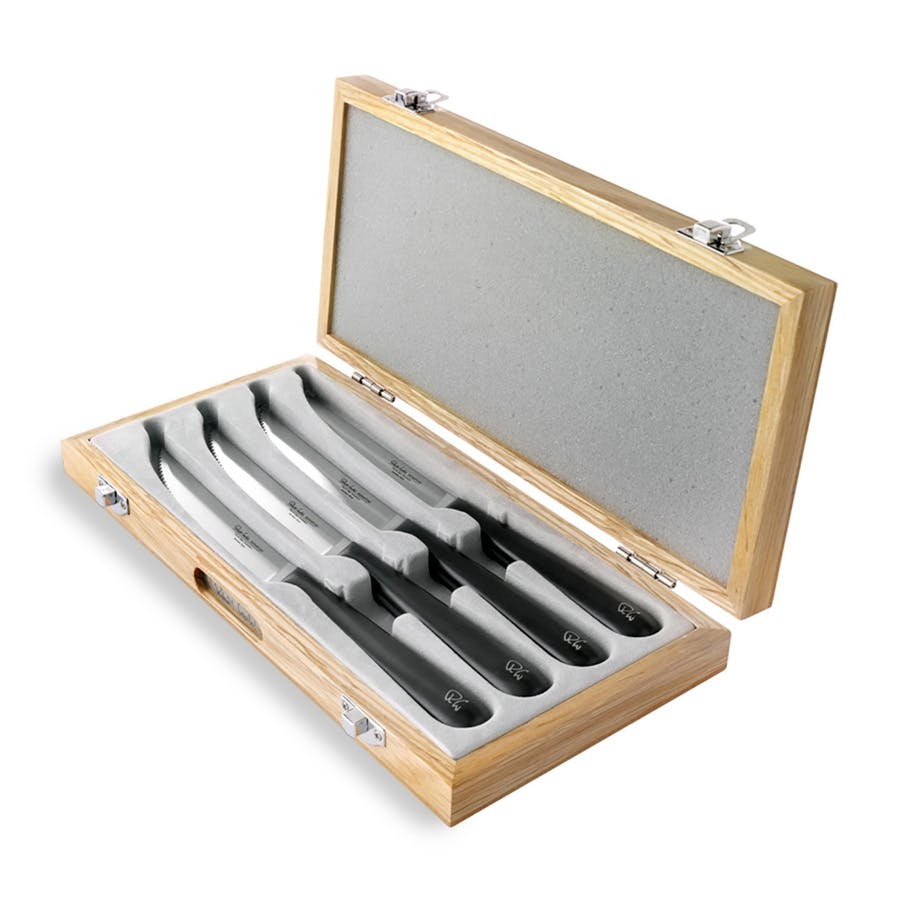 В этот набор на четырех персон входит четыре ножа для мяса. Все ножи Robert Welch объединяет одно общее качество: они отличаются особо прочным закаленным лезвием, способным длительное время оставаться острым без дополнительной заточки. Благодаря идеальной балансировке и весу приборы невероятно удобны и делают прием пищи удивительно приятным процессом. Ножи необычайно элегантны. Они непременно станут украшением любой сервировки. Столовые приборы Robert Welch никогда вас не подведут, потому что для их изготовления используется специально разработанная, высококачественная нержавеющая сталь. Купить Robert Welch в Киеве. Купить Роберт Велш в Киеве. Купить ножи для стейка в Киеве. Купить ножи для стейка Роберт Велш. Студия сервировки стола VENDOME Киев, бульвар Леси Украинки, 30. Телефон: +38(068)650-22-33