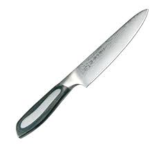 Нож универсальный - прочный и легкий, имеет привлекательный внешний вид. Универсальный нож Tojiro идеально подойдет как для разделки мяса, так и для нарезки овощей. Он изготовлен таким образом, чтобы одинаково хорошо выполнять сразу несколько функций, и является просто незаменимым помощником на кухне. Традиции и качество дамасской технологии ковки металла служит гарантией отличного качества ножей Tojiro на протяжении десятков лет. Лучшие кухонные ножи имеют кованые клинки самые острые и долговечные. Именно такими клинками и оснащены ножи серии Flash компании Tojiro. Изготовлены из многослойной нержавеющей стали VG-10 Gold по уникальной, так называемой дамасской технологии путем кузнечной сварки стальных полос с различным содержанием углерода, сплетенных в жгут. Сердцевину лезвия составляет сверхтвердый сплав из молибденовой стали с добавлением ванадия, кобальта и хрома - благодаря этому ножи Tojiro становятся легкими, тонкими, потрясающе прочными и одновременно удивительно красивыми. Эти пластичные ножи можно не точить в течение 5 лет - их достаточно лишь иногда править. Хвостовик клинка вмонтирован в рукоять и дополнен накладкой из нержавеющей стали, поэтому нагрузка распределяется равномерно, что способствует оптимальному балансу. Ручка сделана из микарты черного цвета, материала который не впитывает запахи, не боится влаги и не вступает в реакцию с химическими веществами. Плотность микарта гораздо выше, чем у дерева, благодаря чему ручка не скользит в ладони.Купить ножи Tojiro в Киеве . Купить ножи тоджиро в Киеве. Купить японские ножи в Киеве. Студия сервировки стола VENDOME Киев, бульвар Леси Украинки, 30. Телефон: +38(068)650-22-33