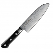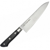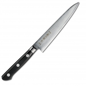 Серия Tojiro DP Damascus представляет собой серию кухонных ножей из 37 слоев как низкоуглеродистой, так и высокоуглеродистой нержавеющей стали, сложенной поверх толстого ядра VG-10 из высококачественной легированной стали кобальта. Процесс ковки ножей создает поистине впечатляющий внешний вид. Волнистый узор называется Касуми Нагаши, что означает "Течет туман". Это традиционная технология получения слоистой стали является одним из самых ценных сокровищ японских мастеров. Твердость по Роквеллу 60 единиц, достаточно тверда, чтобы удерживать острым край, но такой нож легче заточить, чем из сверхтвердой стали. Тройная заклепковая ручка с рукояткой из Micarta . Тонкие лезвия имеют остроту бритвы, которые оттачивается вручную квалифицированными мастерами в Японии.