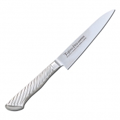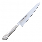 Cерия ножей Tojiro Pro выполнена из качественной нержавеющей стали, имеющей три слоя, что обеспечивает её надежный рез и остроту. Сердечник клинка изготовлен из известной всему миру стали VG-10, прошедшей закалку и от того имеющей прочность до 60-61 единиц по Роквеллу. Серия этих ножей дополняется легкими и прочными рукоятями из нержавеющей стали, которые защищают нож от повреждений и обеспечивают длительную и комфортную работу с инструментом. Данный модельный ряд предназначен как для опытных поваров, так и для начинающих в виду своей качественности и удобства. Настоятельно не рекомендуется использовать данный нож для рубки костей и замороженных мясных продуктов, для вскрытия консервации и резки по доскам из металла и камня, которые значительно уменьшают остроту реза. Рекомендуется хранение в отдельной подставке для кухонных ножей.