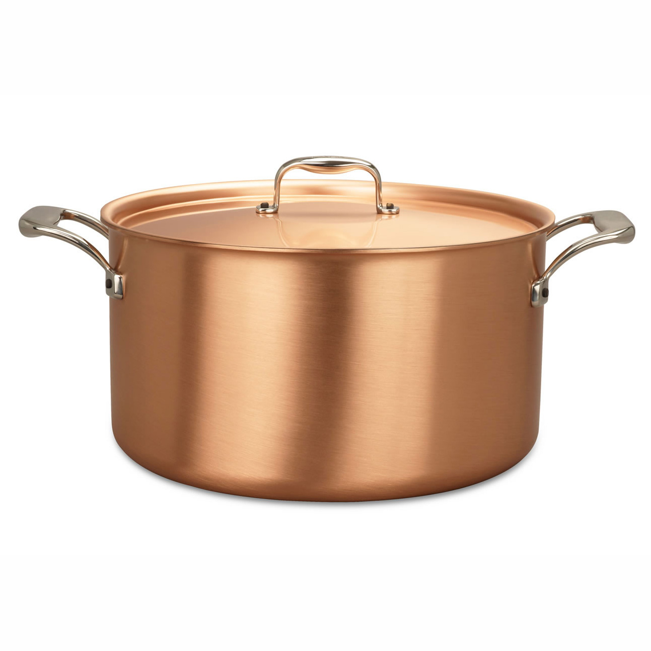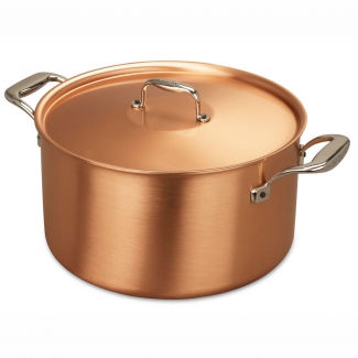 Высокая медная кастрюля от компании Falk Culinair идеально подходит для приготовления блюд на медленном огне. Слой из нержавеющей стали, которым покрыта посуда изнутри никогда не вступает во взаимодействие с продуктами, что гарантирует их качество, вкус и безопасность. Эти довольно большие кастрюли хорошо подходят для приготовления различных супов, соусов, жаркого, щей и борщей. Высокие стенки отлично удерживают влагу. А благодаря хорошей теплопроводности и теплоемкости меди кастрюли из нее становятся идеальной посудой для приготовления любых продуктов. Тепло распределяется равномерно по всей поверхности посуды, и контроль температуры становится достаточно несложным делом.