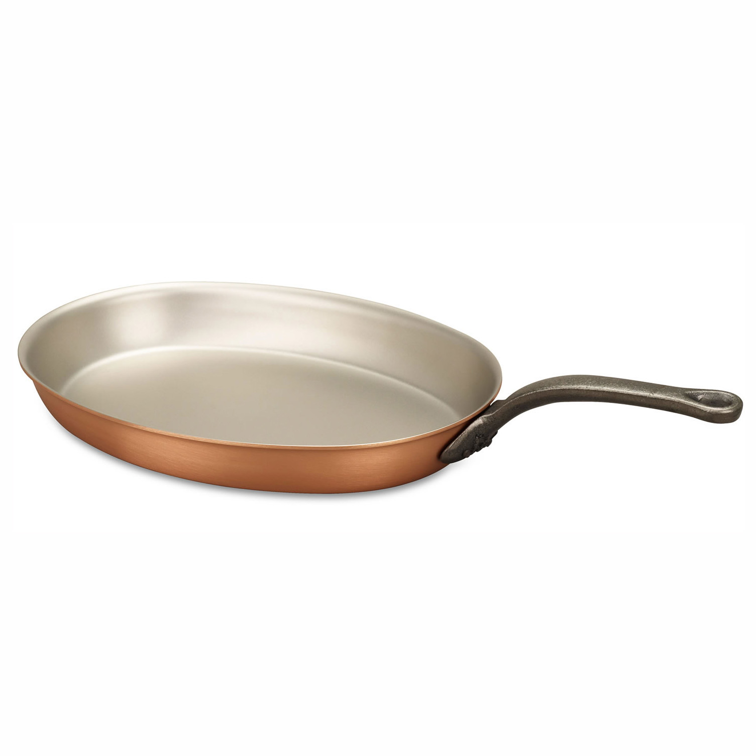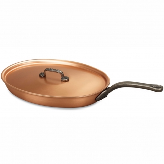 Эта овальная сковорода с длинной ручкой имеет низкие пологие стенки, для выхода пара, что позволяет готовить в ней блюда при более высокой температуре. Благодаря своей форме сковорода идеально подходит для жарки или тушения рыбы. Благодаря особой технологии изготовления этой кухонной утвари продукты в ней не пригорают. Тепло распределяется равномерно по всей поверхности сковороды, и контроль температуры становится достаточно несложным делом.