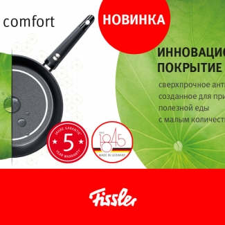 На создание серии Levital® Comfort Fissler вдохновили листья лотоса: вода, подобно ртути, собирается на верхней поверхности листа в крупные капли. Так чрезвычайно долговечное покрытие levital® обладает первоклассными антипригарными свойствами.