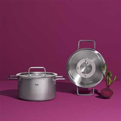Pure Profi Collection - коллекция, которая была создана как для профессионалов, и как для любителей готовить. Все кастрюли сделаны из нержавеющей стали 18/10. Увесистая и плотно прилегающая крышка является ключевым элементом: кипящая вода в кастрюле испаряется на внутренней стороне крышки и каплями орошает приготавливаемые продукты. Таким образом, Ваши блюда получаются вкуснее и сочнее. Большие, удобные ручки из нержавеющей стали удобны в руке и остаются прохладными даже, когда вы готовите. Увеличенный по ширине обод для слива позволяет без брызг и потеков вылить содержимое из посуды или перелить в другую ёмкость. Универсальное штампованное дно CookStar обеспечивает оптимальное поглощение, распределение тепла и подходит для всех видов плит, включая индукционные. Купить Fissler в Украине. Купить Fissler Киев. Посуда из нержавеющей стали. г Киев, бульвар Леси Украинки 30, Студия сервировки стола Vendom. тел. 068-650-22-33