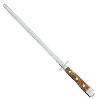 Муссат позволяет поддерживать ножи в идеально остром состоянии. Для восстановления режущей кромки достаточно несколько раз провести клинком вдоль муссата. Металлическая часть, изготовлена из нержавеющей хромистой стали с ванадиевыми и молибденовыми добавками, зубцы заточены вручную. Рукоятка безупречно отполирована, изготавливается из дубовых винных бочек, каждой из которых уже более 80 лет. Древесина, много лет соприкасавшаяся с коньяком, приобретает не только эффектный внешний вид и цвет, но и особые качества. Дуб не гниет, а, будучи отполирован особым фирменным способом, еще и не скользит в руке. Не подходит для мытья в посудомоечной машине.Купить Güde в Киеве. Купить муссат в Киеве.VENDOME Киев. Студия сервировки стола VENDOME Киев. +38(068) 650 22 33