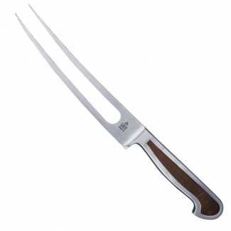 Вилка для мяса имеет два длинных острых зубца. Предназначена для работы с большими кусками мяса, поможет при готовке, нарезке и подаче любых мясных блюд. Металлическая часть выкована вручную из цельного куска нержавеющей стали с добавками хрома, ванадия и молибдена. Главной «изюминкой» всех изделий серии Delta являются щечки рукояти, выполненные из гренадила. Это одна из наиболее тяжелых пород древесины в мире, изделия из которой отличаются благородством, изящной текстурой, прочны, плотны, не боятся ударов. Не подходит для мытья в посудомоечной машине.