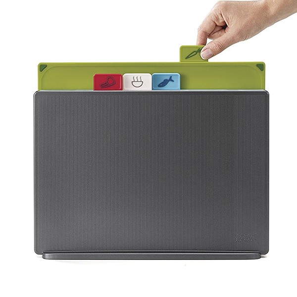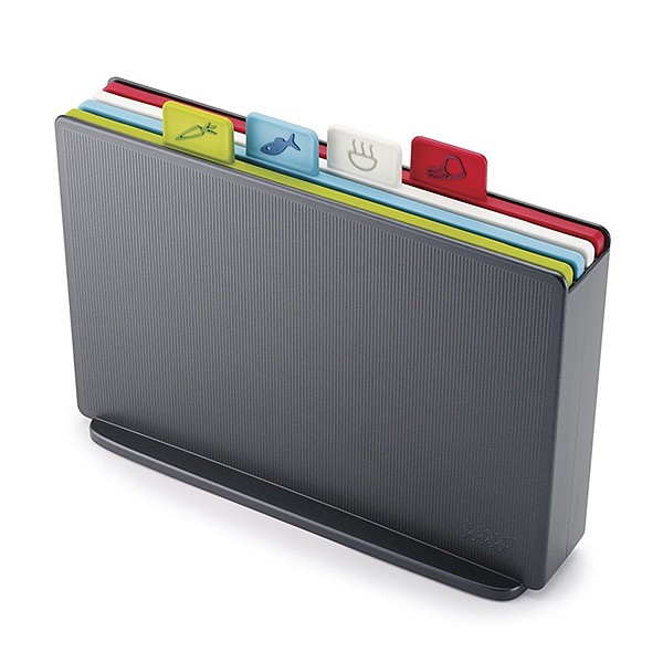 Новый вариант самого известного набора досок Index. На смену рифленым доскам пришли гладкие с закругленными краями. У каждой доски есть бортик, который удерживает сок и крошки. Любую доску можно использовать с двух сторон. Кейс стал компактнее. Он поместится даже в небольшую кухню. Доски маркированы, поэтому вы будете точно знать, какие продукты на какой доске резать. Сырое мясо, сырые овощи, рыба, хлеб и готовые овощи. Доски имеют специальное покрытие, которое щадяще относится к ножам. Купить Joseph Joseph. Купить джозеф. Студия сервировки стола VENDOME Киев, бульвар Леси Украинки, 30. Телефон: +38(068)650-22-33