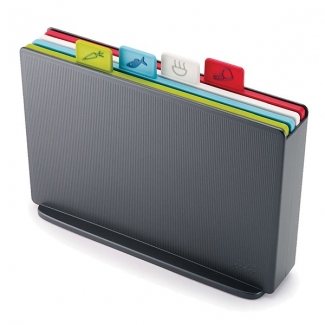 Новый вариант самого известного набора досок Index. На смену рифленым доскам пришли гладкие с закругленными краями. У каждой доски есть бортик, который удерживает сок и крошки. Любую доску можно использовать с двух сторон. Кейс стал компактнее. Он поместится даже в небольшую кухню. Доски маркированы, поэтому вы будете точно знать, какие продукты на какой доске резать. Сырое мясо, сырые овощи, рыба, хлеб и готовые овощи. Доски имеют специальное покрытие, которое щадяще относится к ножам.Сам кейс имеет вентиляционное отверстие, которое позволяет сохранять доски в сухости, а сами доски разделены между собой перегородками, за счет чего они не соприкасаются друг с другом. Можно мыть в посудомоечной машине.Купить Joseph Joseph. Купить джозеф. Студия сервировки стола VENDOME Киев, бульвар Леси Украинки, 30. Телефон: +38(068)650-22-33