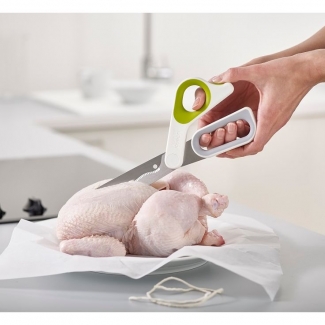 Кухонные ножницы PowerGrip идеально подходят для резки трав, спаржи, мяса и других продуктов. Лезвие ножниц изготовлено из нержавеющей стали, устойчивой к ржавчине и механическим повреждениям. Зубчатая кромка позволяет справиться даже с резкой мелких костей. Рукоять спроектирована специально, чтобы была возможность использовать ножницы двумя руками, что крайне удобно в случае, если необходимо порезать куриные кости или жесткую веревку. Также ручки дополнены резиновыми накладками, которые препятствуют скольжению изделия в ладони во время работы. Для удобства очистки ножницы легко разделяются на составные части. Купить Joseph Joseph. Купить джозеф. Студия сервировки стола VENDOME Киев, бульвар Леси Украинки, 30. Телефон: +38(068)650-22-33