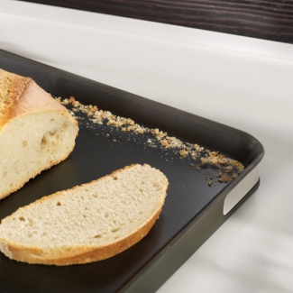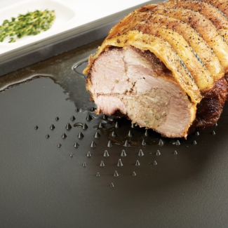 Поднос для сервировки и разделывания мяса Cut&Carve 100 Collection от компании Joseph Joseph невозможно даже сравнивать со старыми деревянными досками. Помимо того, что выглядит он не в пример эстетичнее, так это приспособление разы более гигиенично и практично. Сама доска оснащена резиновыми бортиками, которые удерживают сок фруктов и овощей или же жир от мяса на поверхности, не позволяя вытекать на стол. Кроме того, благодаря таким бортикам доску не нужно сильно придавливать к столешнице, ведь резина не дает ей скользить. Две разные стороны позволяют использовать доску для различных целей: шипованная идеально подойдет для разделывания мяса, а гладкая - для вареных продуктов, овощей и фруктов. Поверхность доски сделана под небольшим углом, чтобы выделяющийся при нарезке сок стекал и не мешал при работе. Покрытие доски не портит ножи, подходит даже для прихотливых керамических лезвий. Кроме того, эту доску можно использовать и как сервировочный поднос. Купить Joseph Joseph. Купить джозеф. Студия сервировки стола VENDOME Киев, бульвар Леси Украинки, 30. Телефон: +38(068)650-22-33