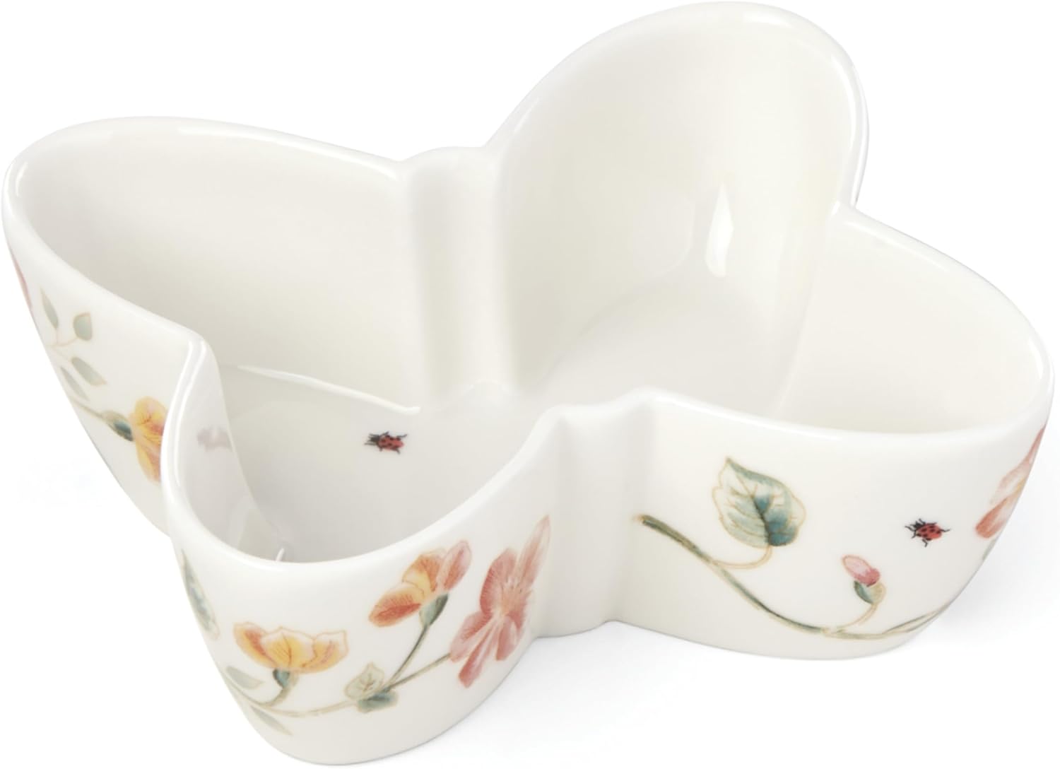 Эта небольшая, но очень милая пиала в виде бабочки, прекрасно подойдет для подачи ваших любимых ягод, маленьких конфеток, оливок и других вкусностей! Украшена она, как и все изделия коллекции Butterfly meadow - ботанической тематикой и божьими коровками, которые расползлись по белоснежному фарфору. Эта пиала станет чудесным знаком внимания для ваших близких, а также вы можете порадовать себя! Подходит как для посудомоечной машины так и для микроволновой печи. Продукция компании Lenox представлена компанией Kitchen House на территории Украины. Купить Butterfly meadow в Киеве Купить посуду Киев Бульвар Леси Украинки, 30 Тел:38 (068) 650 22 33