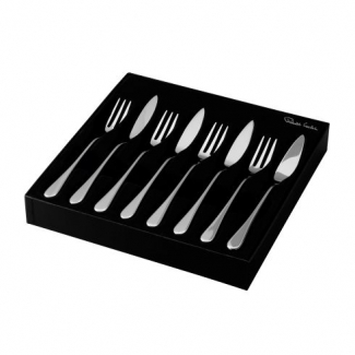 Специальные наборы столовых приборов для рыбы помогут избежать неловкой ситуации за столом и сделать трапезу действительно приятной. Внешне рыбный нож можно узнать по малым размерам и широкому лезвию со специальными выемками (похожему на лопатку). Вилка тоже сравнительно небольшая, с округлой рабочей частью и особой формой зубцов (напоминает клешни краба). При этом, вилка может использоваться не только для еды, но и для отделения рыбного филе от костей. вместо рыбного ножа используют другую вилку. Однако общепринятым считается пользование двумя разными приборами. Изюминка этой серии в контрасте между тончайшим и элегантным профилем самих приборов с удивительной массивностью их рукояток. Благодаря этому достигаются удивительные тактильные ощущения и комфорт при использовании приборов. Не последнюю роль играет и зеркальная полировка стали, что делает приборы идеально гладкими, блестящими и сияющими. Держать в руках такой столовый прибор – настоящее удовольствие. Приборы из этого набора можно смело назвать одними из наиболее функциональных среди всех изделий Robert Welch. Еще одно из достоинств этих столовых приборов – их можно без опаски мыть в посудомоечной машине. Столовые приборы Robert Welch никогда вас не подведут, потому что для их изготовления используется специально разработанная, высококачественная нержавеющая сталь. При этом конкретный тип сплава зависит от сферы его использования. Например, для изготовления лезвий ножей применяется специально закаленная нержавеющая сталь, а для изготовления ложек - так называемая медицинская сталь 18/10. К каждому из изделий мастера команды Robert Welch подходят с особой ответственностью. В ходе изготовления все без исключения столовые приборы проходят множество технологических операций. Например, нож подвергается 24 различным технологическим процессам, вилка - 35, а ложка - 32.Купить приборы для рыбы Robert Welch Киев. Купить приборы для рыбы Роберт Велш в Киеве. Студия сервировки стола VENDOME Киев, бульвар Леси Украинки, 30. Телефон: +38(068)650-22-33