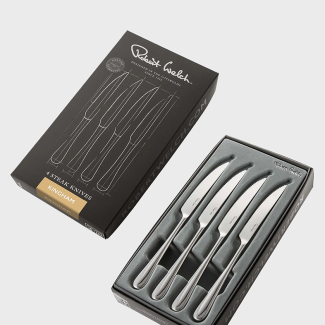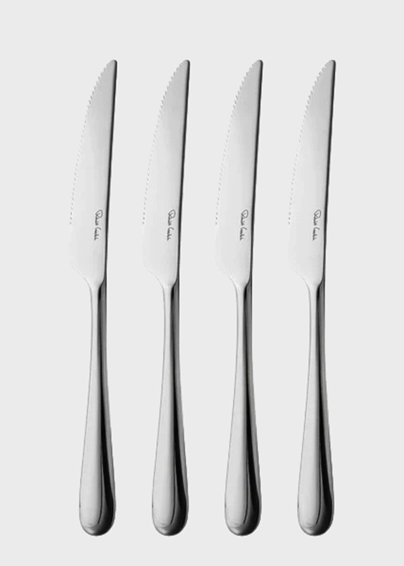 В этот набор на четырех персон входит четыре ножа для мяса. Благодаря идеальной балансировке и весу, приборы Robert Welch невероятно удобны и делают прием пищи удивительно приятным процессом. Ножи необычайно элегантны. Они непременно станут украшением любой сервировки. Зеркальная полировка стали придает изделиям особенный шарм, благодаря ей приборы становятся идеально гладкими, блестящими и сияющими. Держать в руках такой столовый прибор – настоящее удовольствие. Еще одно из достоинств этих столовых приборов – их можно без опаски мыть в посудомоечной машине. Столовые приборы Robert Welch никогда вас не подведут, потому что для их изготовления используется специально разработанная, высококачественная нержавеющая сталь. При этом конкретный тип сплава зависит от сферы его использования. Например, для изготовления лезвий ножей применяется специально закаленная нержавеющая сталь, а для изготовления ложек - так называемая медицинская сталь 18/10. К каждому из изделий мастера команды Robert Welch подходят с особой ответственностью.Купить набор ножей для мяса Robert Welch Киев. Купить Роберт Велш в Киеве.Купить ножи для стейка в Киеве. Студия сервировки стола VENDOME Киев, бульвар Леси Украинки, 30. Телефон: +38(068)650-22-33