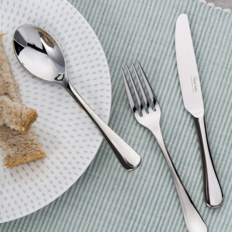 Этот детский набор столовых приборов включает 3 предмета: сервировочная вилка, сервировочная ложка, сервировочный нож. Все изделия изготовлены с учетом анатомии детей и в строгом соответствии с требованиями безопасности, кроме того, они изготовленных из высококачественной нержавеющей стали. С такими столовыми приборами процесс обучения детей правилам этикета за столом и способам применения этих самых приборов превращается в настоящее удовольствие, как для вас, так и для самого ребенка. Это отличнейший подарок любому ребенку, ведь у него, как у самого настоящего взрослого, будут свои собственные брендовые, красивые и необычайно удобные столовые приборы! Ложки и вилка набора изготовлены из нержавеющей 18/10 стали. Нож - выкован из цельного слитка закаленной специальным образом нержавеющей стали, что позволяет гарантировать высочайшее качество острия. Зеркальная полировка стали делает приборы идеально гладкими, блестящими и сияющими. К ним так и хочется прикоснуться руками! А довольно оригинальный дизайн изделий позволяет использовать эти приборы для креативной и необычной сервировки. Еще одно из достоинств этих столовых приборов – их можно без опаски мыть в посудомоечной машине. Купить Роберт Велш в Киеве. Robert Welch Киев. Купить детские столовые приборы в Киеве.Студия сервировки стола VENDOME Киев, бульвар Леси Украинки, 30. Телефон: +38(068)650-22-33