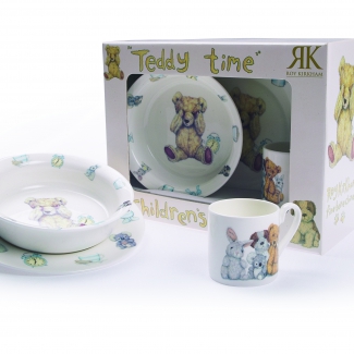 "Roy Kirkham" "Teddy Time Blue" Набор детский 3 пред. (тарелка, мисочка, чашка)