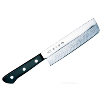 Нож Накири Tojiro DP Damascus – это идеальный нож для работы с фруктами и овощами. С его помощью можно легко нарезать и очистить любой фрукт, даже такой, который обладает твердой кожурой. Лезвие ножа изготовлено из известной всему миру нержавеющей стали VG-10, которая имеет прочность до 61 единицы по шкале Роквелла. Данная сталь хороша своими режущими свойствами, а также непревзойденной защитой от коррозии, благодаря чему нож остается в работе долгие годы. Рукоять изготавливается из качественного пластика, который со временем не теряет своих свойств и обеспечивает повару удобный и комфортный хват. Данный модельный ряд предназначен как для опытных поваров, так и для начинающих в виду своей качественности и удобства. Настоятельно не рекомендуется использовать данный нож для рубки костей и замороженных мясных продуктов, для вскрытия консервации и резки по доскам из металла и камня, которые значительно уменьшают остроту реза. Рекомендуется хранение в отдельной подставке для кухонных ножей.