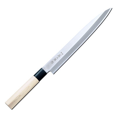 Янаги — специализированный нож с длинным узким лезвием,которым очень легко нарезать тончайшие ломтики сашими. С ним готовить традиционные японские блюда ещё удобнее. Благодаря тончайшей заточке, лезвие ножа как по маслу входит в нежнейшее филе. Это превращает приготовление блюд в искусство, в результате которого рождаются изумительные вкусовые сочетания. Ножом для суши «Янаги» можно нарезать не только рыбу, но и нежное мясо. Он прекрасно подходят для говядины и свинины. С его помощью легко отделять филе от кости. Купить нож Янаги стоит не только тем, кто готовит роллы, суши и сашими, но и любителям мясной нарезки. С ним даже домашний повар может почувствовать себя профессионалом. Японский нож Tojiro Japanese Knife относится к традиционным японским изделиям. При их производстве используется высокоуглеродистая сталь. Сочетая в себе вековые традиции и современные технологии, ножи Тожиро обладают характеристиками японской катаны, которая хранит в себе историю всей страны. Заточка выполняется водными камнями. Купить ножи Tojiro в Киеве. Купить нож для сашими. Купить ножи тоджиро в Киеве. Студия сервировки стола VENDOME Киев, бульвар Леси Украинки, 30. Телефон: +38(068)650-22-33