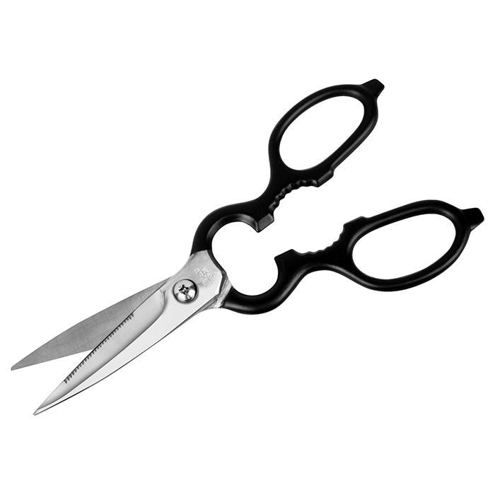 Кухонные ножницы Tojiro изготовлены из высококачественной нержавеющей стали, обладающей высокой твердостью и устойчивостью к коррозии. Ручки ножниц выполнены из стали, окрашенной в черный цвет. Кухонные ножницы - универсальный помощник в вашем доме. Они отлично справляются со многими кухонными работами, начиная с нарезки свежей зелени и вскрытия прочных картонных и полимерных упаковок и, заканчивая разделкой рыбы и птицы (срезание плавников, разрезание тушки цыпленка на порционные части). Имеется овальная полость между ручками, снабженная зубцами, она используется для колки орехов.Купить Tojiro в Киеве . Купить тоджиро в Киеве. Студия сервировки стола VENDOME Киев, бульвар Леси Украинки, 30. Телефон: +38(068)650-22-33