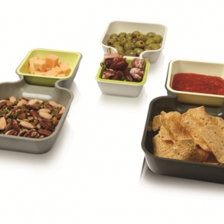 С набором из 6-ти мисок Vacu Vin Вы сможете подать свои любимые закуски различными способами. В мисках с двумя выемками вы сможете подать закуску с подходящим соусом или две закуски вместе. Квадратные миски можно использовать отдельно или вставить внутрь двойных емкостей, что создает еще больше возможностей сервировки. Вы сможете не только отделить закуски друг от друга и предотвратить смешение вкусов, но и украсить свой стол различными цветовыми решениями. После использования миски складываются друг в друга, не занимая много места в Вашем кухонном шкафу. Набор из 6-ти мисок "Serve & Stack" – это практичное решение для любой вечеринки или фуршета. Купить Vacu Vin в Киеве. Купить Ваку Вин. Купить набор мисок. Студия сервировки стола VENDOME. Киев, бульвар Леси Укранки,30. Телефон:+38(068)650-22-33