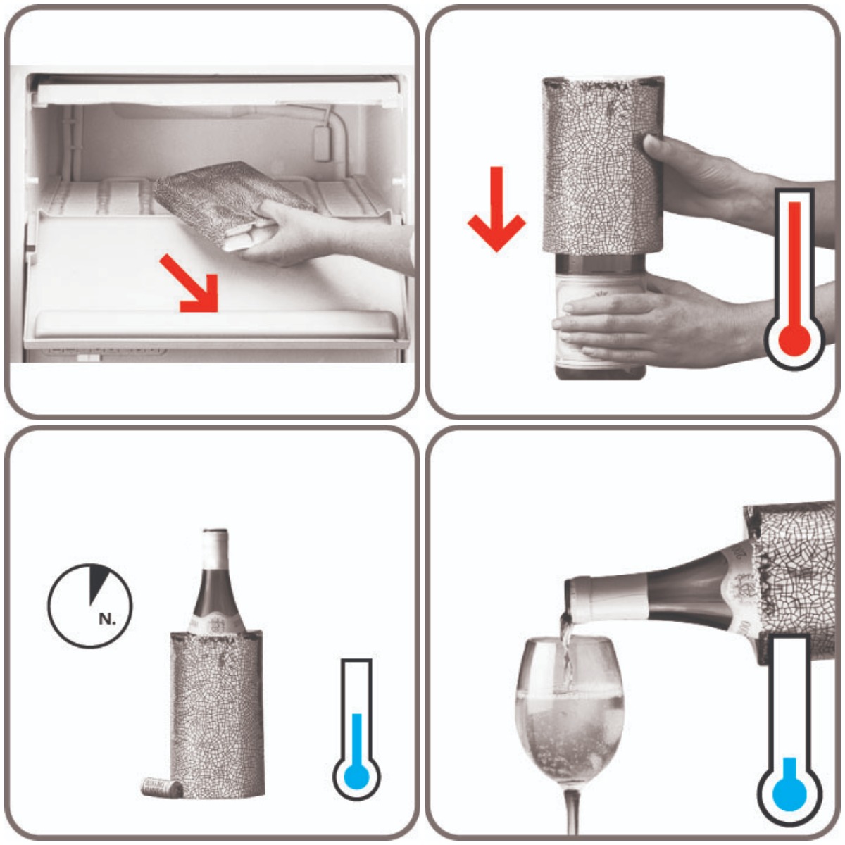 Быстрое охлаждение напитков и сохранение их холодными – больше не проблема, если у вас есть охладительная рубашка VacuVin. Удивительные охладительные рубашки VacuVin можно назвать очень холодными мягкими футлярами. Вынув рубашку из морозилки, вы просто надеваете его на бутылку, и напиток охлаждается за 5 минут, оставаясь холодным часами. Охладительные рубашки не бьются и могут использоваться многократно. Купить Vacu Vin в Киеве. Купить охладитель Vacu Vin в Киеве. Студия сервировки стола VENDOME Киев. Тел: +38(068) 650 22 33