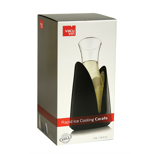 Графин Vacu Vin охладит Ваши напитки за 5 минут без использования льда. В подставке находятся два охладительных элемента, позволяющие охлаждать различные напитки, например, вино, воду, молоко, сок. Храните охладительные элементы в морозилке и поместите их в подставку перед использованием. Содержимое графина быстро остынет и останется холодным несколько часов. Тонкий современный дизайн графина сделает его украшением любого стола.