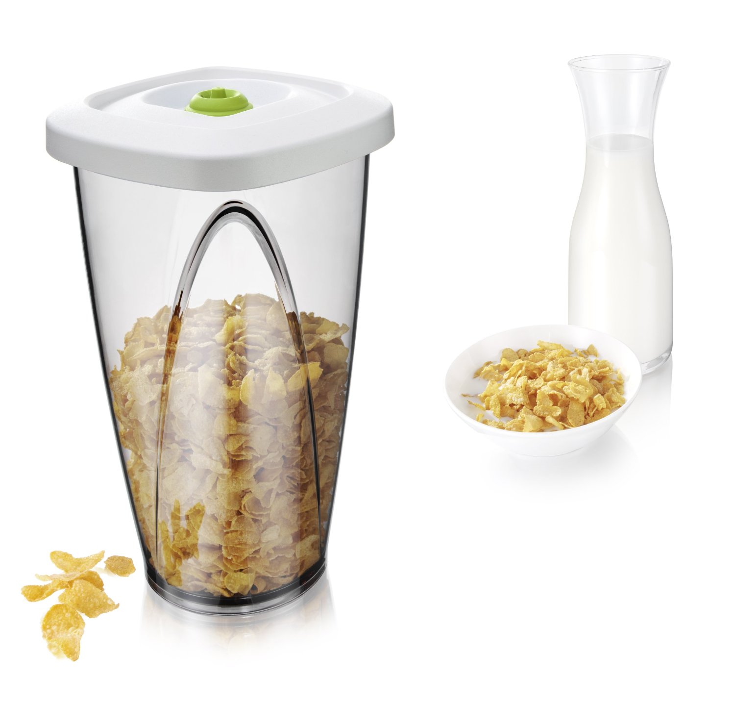 Под воздействием воздуха чай, кофе и другие сухие продукты быстро портятся, отсыревают, утрачивают свой вкус и аромат. Вакуумный насос отсасывает воздух из новой, большей по объему, емкости для хранения продуктов, создавая вакуум для оптимальных условий хранения.