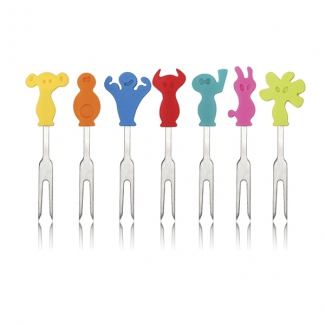 Фигурки веселых человечков, полюбившиеся всем в виде маркираторов для бокалов, выпускаются также в виде шпажек для закусок. Маленькие вилочки с разноцветными фигурками сверху легко отличить друг от друга. Отлично подходят для вечеринок и домашних праздников