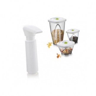 Вакуумный насос VacuVin откачивает воздух из контейнера. Когда вы достигнете оптимального уровня вакуума, раздастся щелчок уникального звукового индикатора. Благодаря вакууму продукты сохраняются намного дольше. Купить Vacu Vin в Киеве. Купить вакуумный насос Vacu Vin в Киеве. Студия сервировки стола VENDOME Киев. Тел: +38(068) 650 22 33